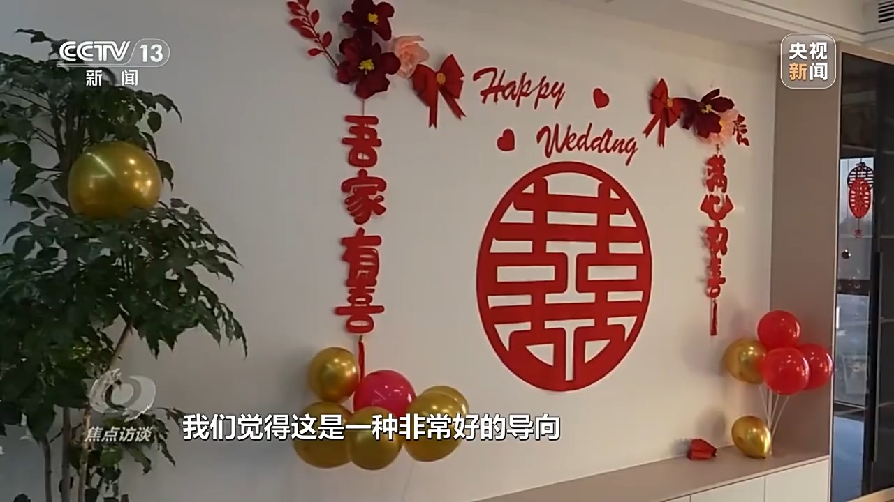 共青團(tuán)中央宣傳部副部長(zhǎng) 劉釗:我們?cè)谶M(jìn)行社會(huì)倡導(dǎo),進(jìn)行文明引導(dǎo),在各地舉辦了很多集體婚禮,確實(shí)得到了基層青年比較熱烈比較積極的響應(yīng)。他們用更樸素更自然更貼近自己實(shí)際需求的方式方法來籌辦自己的婚禮,也來回應(yīng)一些高額彩禮給他們所帶來的壓力,我們覺得這是一種非常好的導(dǎo)向。