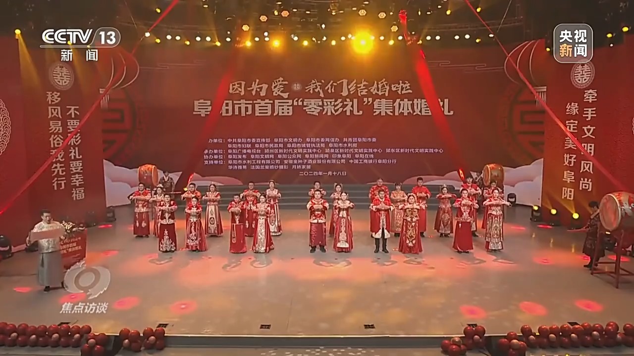 不久前,安徽阜陽當(dāng)?shù)?0余家媒體共同直播了一場(chǎng)“零彩禮”集體婚禮,58對(duì)新人在親人、觀禮嘉賓及廣大網(wǎng)友祝福聲中,鄭重許下相守一生的承諾。