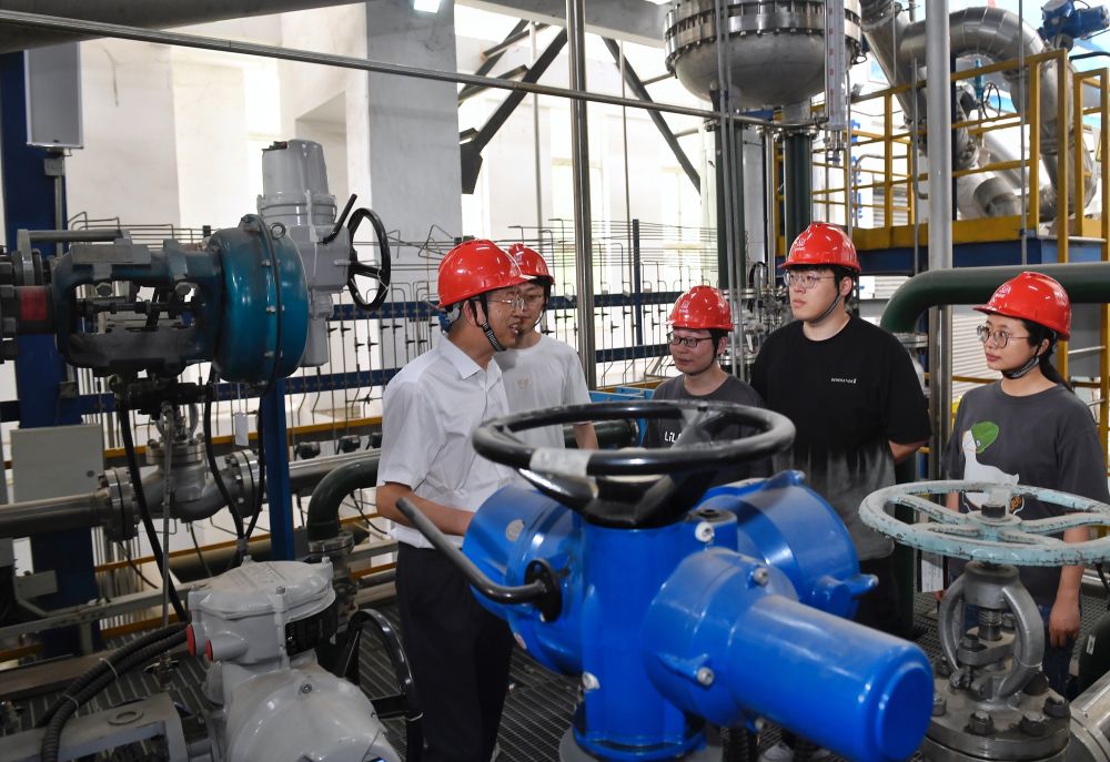 5月24日,在位于成都的中國核動(dòng)力研究設(shè)計(jì)院內(nèi),鐘元章(右一)與團(tuán)隊(duì)年輕人在試驗(yàn)臺(tái)架上交流。