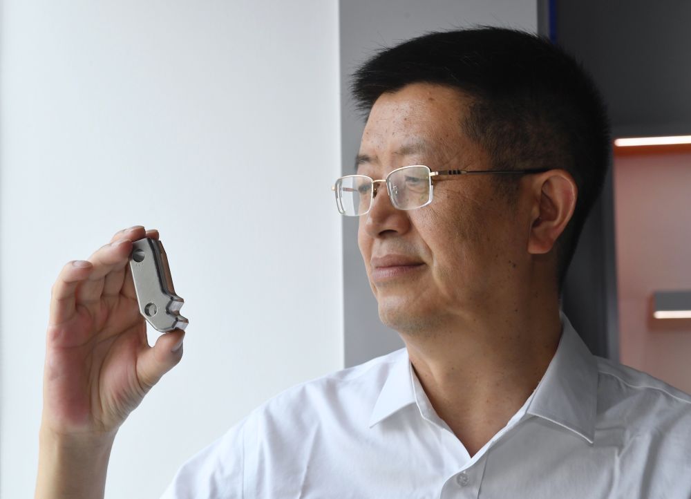5月24日,在位于成都的中國核動(dòng)力研究設(shè)計(jì)院內(nèi),鐘元章在展示通過3D打印的堆內(nèi)構(gòu)件堆芯圍筒。鐘元章介紹,通過3D打印的方式來生產(chǎn)“華龍一號(hào)”的零部件,是目前的一個(gè)研究方向。