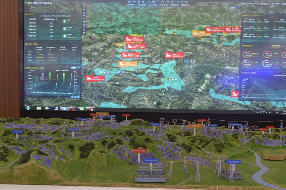 5月29日,記者拍攝的大同光伏發(fā)電監(jiān)測(cè)服務(wù)中心的可視化系統(tǒng)。(新華社記者劉力航 攝)