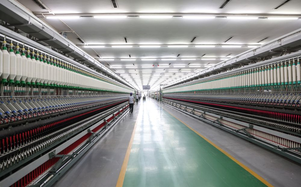圖為無錫一棉紡織集團(tuán)有限公司的特高支緊密紡智能制造車間。新華社記者 楊磊 攝
