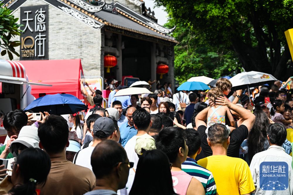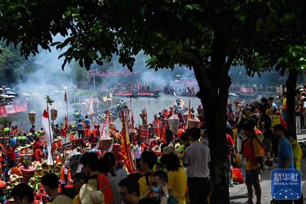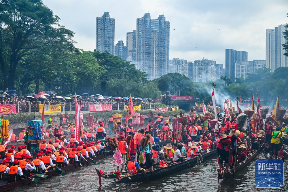 6月10日,國內(nèi)外游客匯聚在獵德觀賞“龍船景”?!褒埓啊笔菑V府地區(qū)水鄉(xiāng)在端午期間舉辦的一種民俗活動(dòng)。