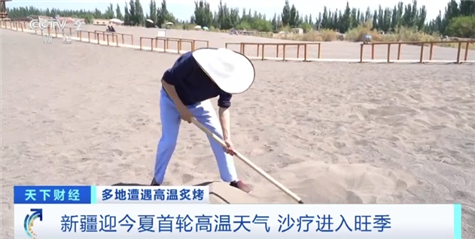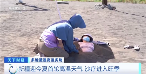 從6月10日開始,新疆大部分地區(qū)迎來了入夏以來首輪高溫天氣,部分地區(qū)的氣溫升至40攝氏度以上。在吐魯番,沙療產(chǎn)業(yè)迎來了旺季。