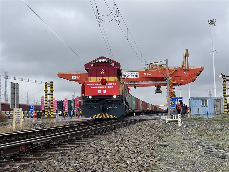 4月26日,烏魯木齊—薩萊諾中歐班列順利開(kāi)行,這標(biāo)志著新疆中歐班列境外南通道跨“兩海”線路成功運(yùn)行。吳奇攝