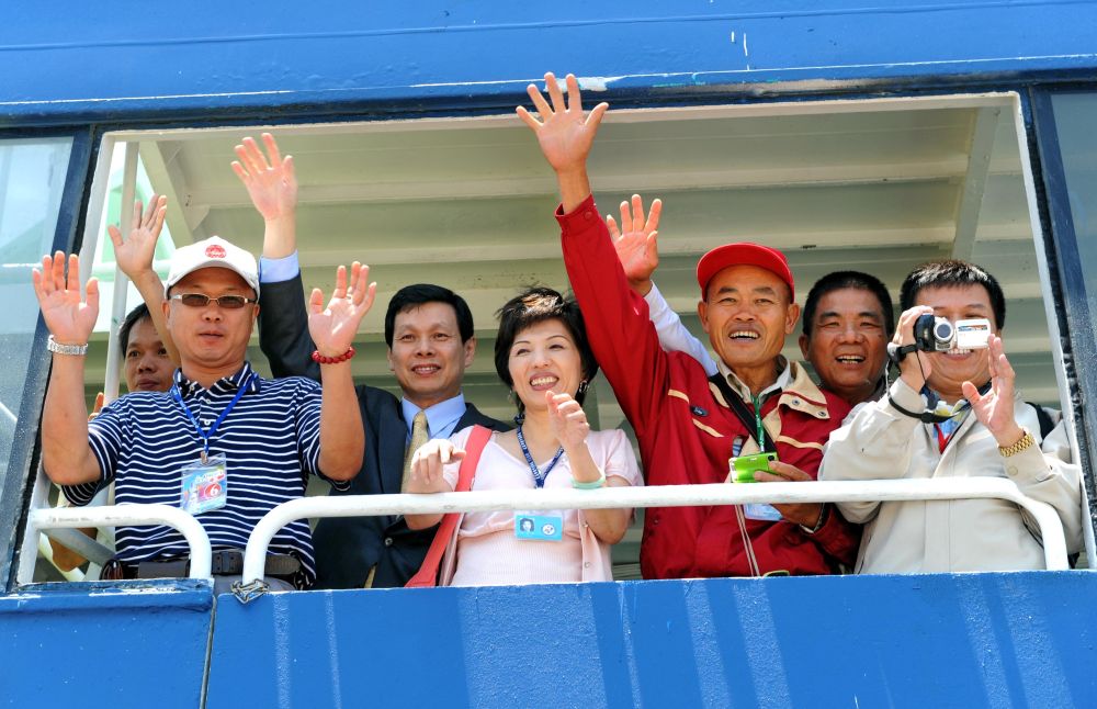 2009年5月15日,350名臺胞乘坐“海洋拉拉號”客輪從臺中港直航福建湄洲島謁祖進(jìn)香,拉開了首屆“海峽論壇”活動(dòng)的序幕。新華社記者 張國俊 攝