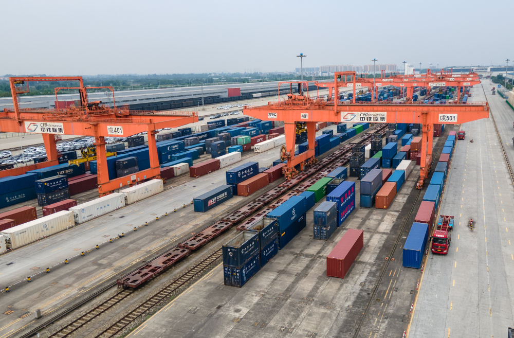 這是2024年6月13日拍攝的成都國際鐵路港(無人機照片)。新華社記者 唐文豪 攝