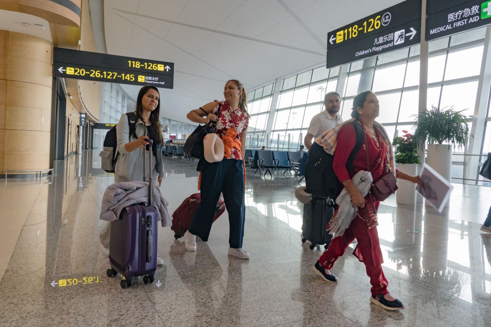 2024年6月13日,旅客行走在成都天府國際機場T1航站樓內(nèi)。新華社記者 唐文豪 攝