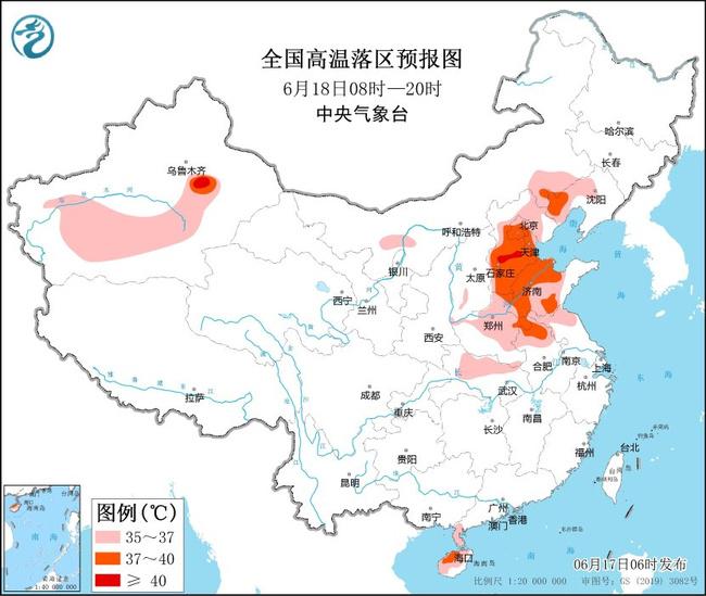 中央氣象臺6月17日06時繼續(xù)發(fā)布高溫黃色預(yù)警:預(yù)計17日白天,內(nèi)蒙古西北部、新疆南疆盆地和東部、河北中南部和東北部、北京、天津、遼寧西部、山東中西部、河南東部和南部、安徽北部、湖北東北部、海南島大部等地有35~36℃高溫天氣,其中,新疆南疆盆地、河北中南部、北京南部、遼寧西南部、山東北部等地部分地區(qū)最高氣溫37~39℃,新疆吐魯番盆地等地局地可達40℃以上。
