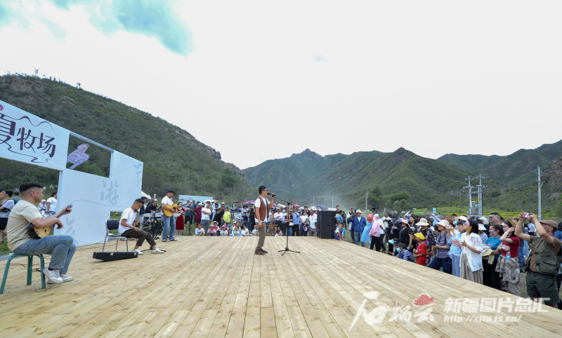 △6月15日,歌手為游客演唱歌曲。由烏魯木齊市水磨溝區(qū)主辦的夏牧場·游牧文化旅游節(jié)在石人溝蝴蝶谷景區(qū)啟動?;芋w驗、游牧文化展演、刁羊等,讓游客沉浸式體驗游牧文化,感受大美風(fēng)光。石榴云/新疆日報記者 王禹攝