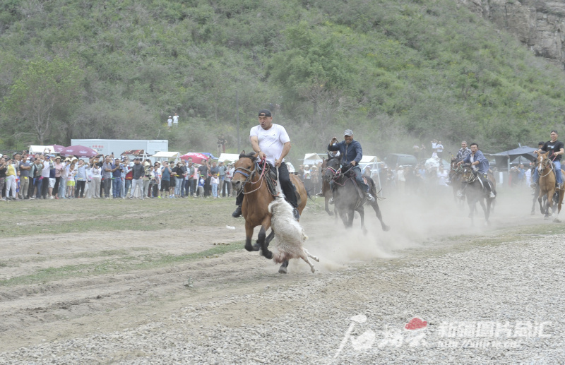 △6月15日,牧民正在表演精彩的刁羊。石榴云/新疆日報記者 王禹攝