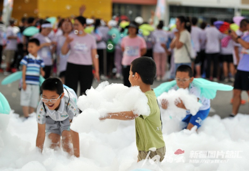 △6月14日,一場趣味“泡泡跑”活動在烏魯木齊杉杉奧特萊斯廣場舉辦,600多名市民參加了這場別開生面的5公里“泡泡跑”。與傳統(tǒng)的跑步比賽不同,“泡泡跑”更具趣味性,參與者可以邊跑邊玩,盡情享受一場清涼的泡泡盛宴。石榴云/新疆日報記者 秦梅花攝