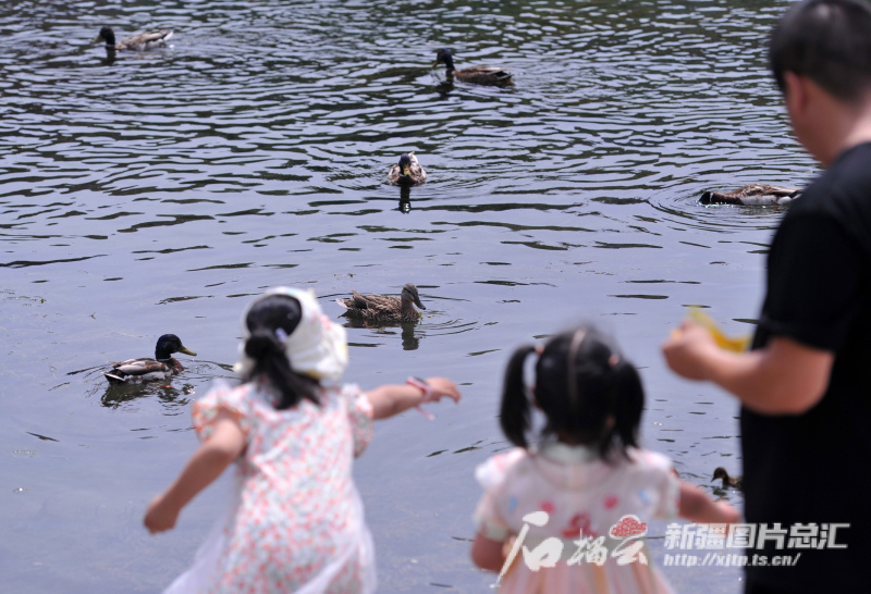 △6月15日,烏魯木齊市民在水磨溝區(qū)水磨河濱河景觀帶喂鴨子。古爾邦節(jié)假期,許多市民選擇在家門口“微度假”模式,悠享慢時光。石榴云/新疆日報記者 秦梅花攝