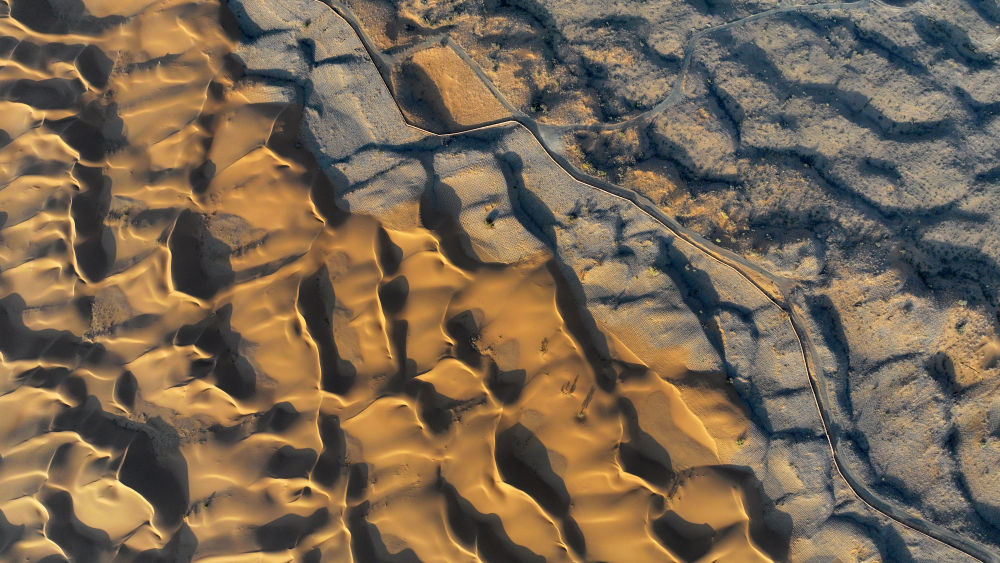 這片黃沙橫跨寧夏和內(nèi)蒙古兩地,屬于毛烏素沙地。不久前,這里剛剛打了一場(chǎng)省際聯(lián)手治沙的攻堅(jiān)戰(zhàn)。