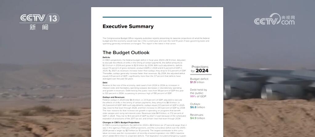 美國國會預算辦公室18日發(fā)布報告稱,在2024財年,聯(lián)邦政府預算赤字預計將達到1.9萬億美元。