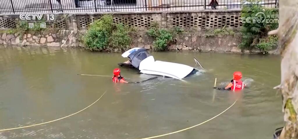 小車(chē)失控沖進(jìn)河涌 熱心群眾營(yíng)救被困司機(jī)