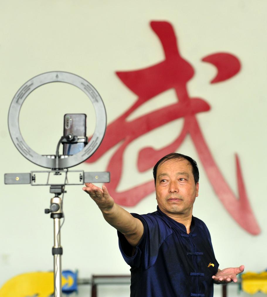 2020年8月5日,石同鼎直播六合拳拳法。