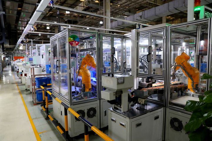 這是上海嘉定安波福智能化工廠生產(chǎn)車間(5月23日攝)。新華社記者 龔兵 攝