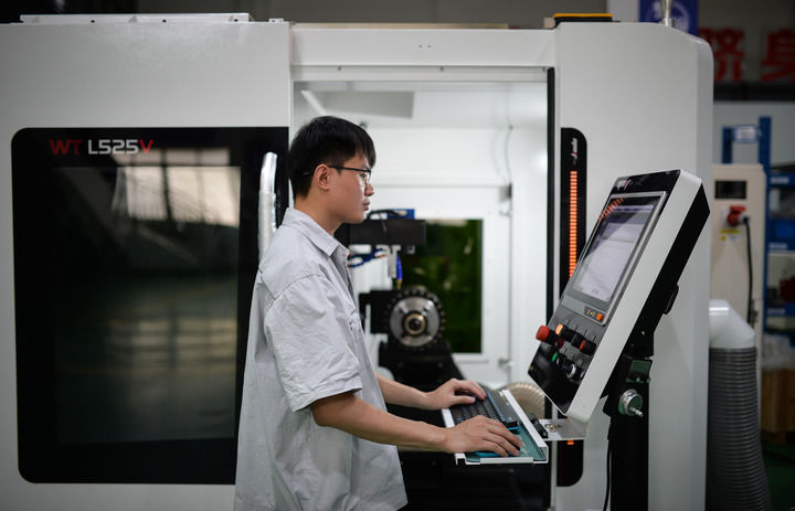 員工在位于廣東省佛山市的原點(diǎn)智能技術(shù)有限公司車間操作數(shù)控機(jī)床(5月16日攝)。新華社記者 李任滋 攝