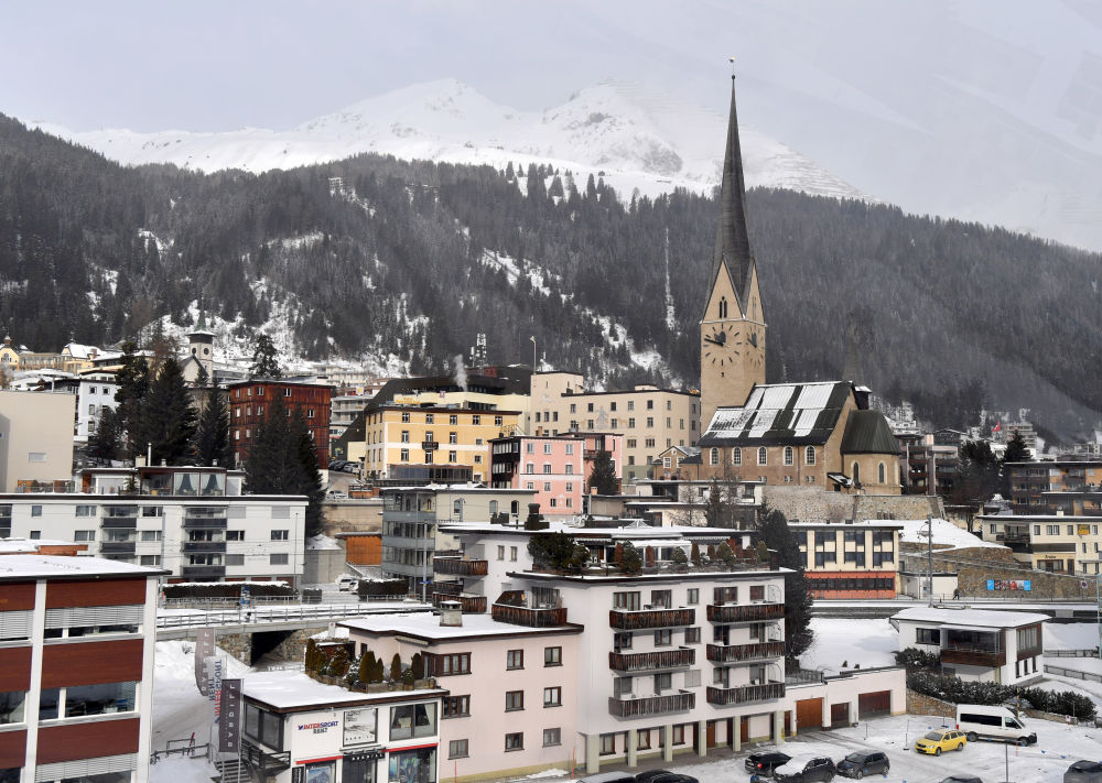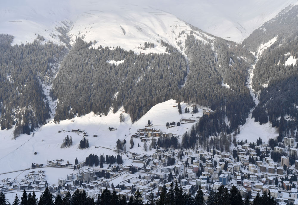 ↑在瑞士達沃斯拍攝的世界經(jīng)濟論壇標識。