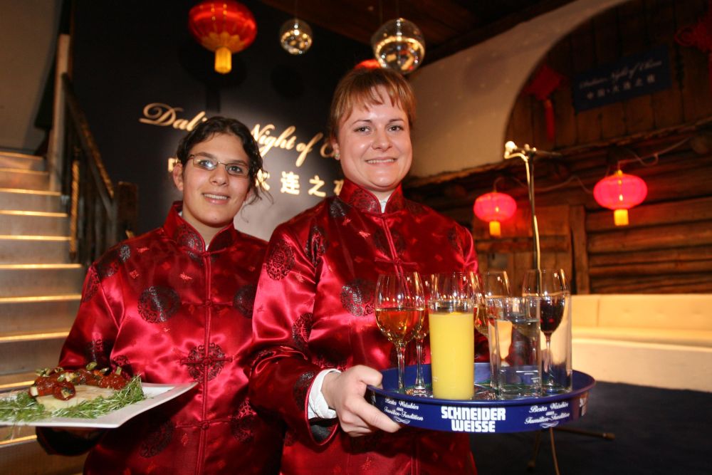 2007年1月25日,在瑞士達沃斯舉行的“中國大連之夜”上,當?shù)嘏?wù)員穿上了中國傳統(tǒng)服裝。