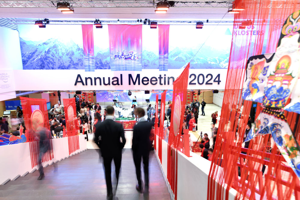 ↑在瑞士達沃斯舉行的世界經(jīng)濟論壇2024年年會現(xiàn)場。