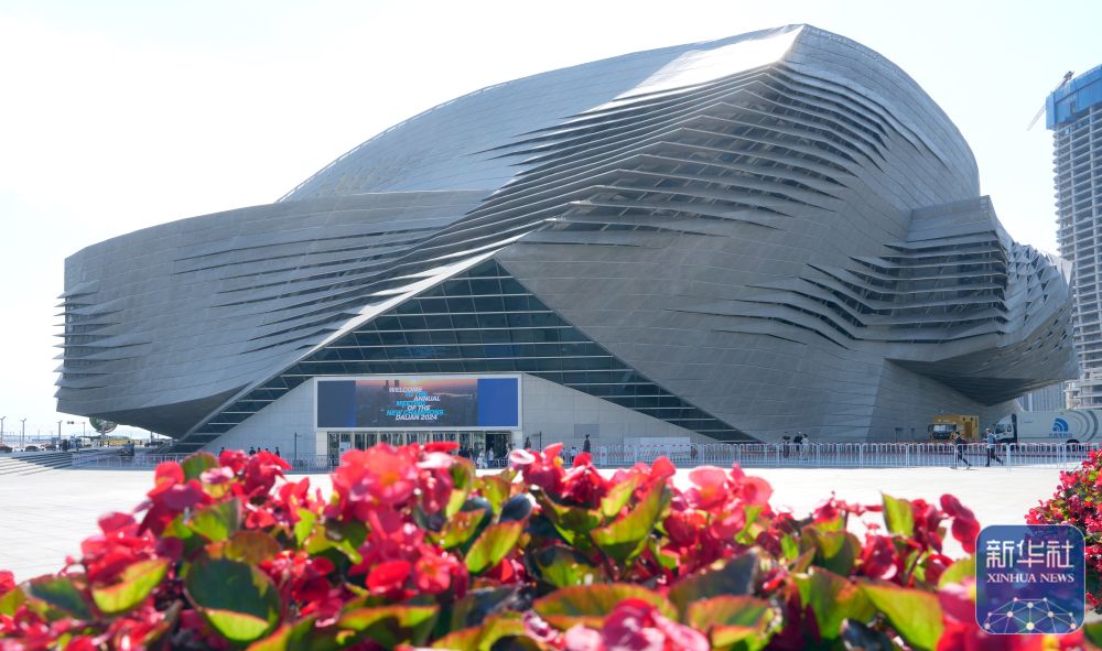 ↑ 這是6月25日拍攝的第十五屆夏季達(dá)沃斯論壇主會(huì)場(chǎng)大連國際會(huì)議中心外景。