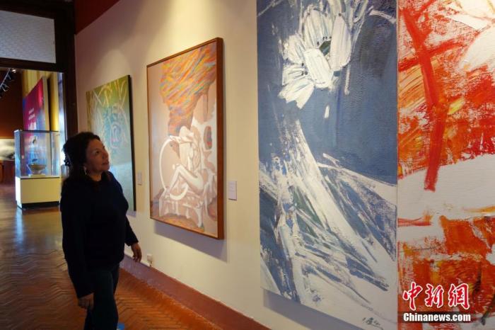 資料圖:當(dāng)?shù)貢r間2016年11月18日,利馬,一名秘魯女觀眾觀看APEC“人與自然”藝術(shù)展。11月16日,為期23天的“感知中國走進(jìn)秘魯——APEC‘人與自然’藝術(shù)展”在秘魯國家考古人類學(xué)歷史博物館舉辦。 中新社記者 莫成雄 攝