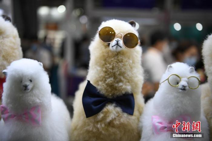 資料圖:2021年5月7日,首屆中國國際消費(fèi)品博覽會在海南省??谑姓介_展,秘魯羊駝毛產(chǎn)品品牌Warmpaca攜各種羊駝萌寵玩偶亮相消博會。 中新社記者 崔楠 攝