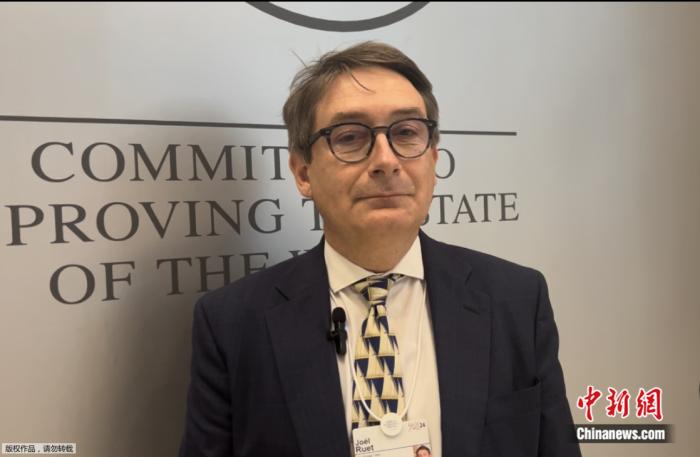 2024年6月27日,法國橋智庫主席、G20工商峰會能源工作組成員周瑞(Joel Ruet)在2024年夏季達沃斯論壇期間接受中新網(wǎng)專訪。中新網(wǎng)陳彩霞攝