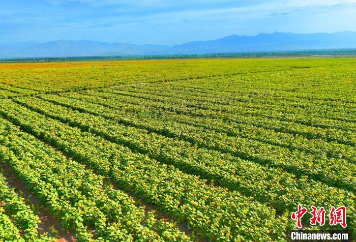 7月2日,走進(jìn)新疆鐵門關(guān)市二十一團(tuán),一眼望不到邊的向日葵正大面積綻放,構(gòu)成一幅美麗的壯觀畫卷。白克斌 攝