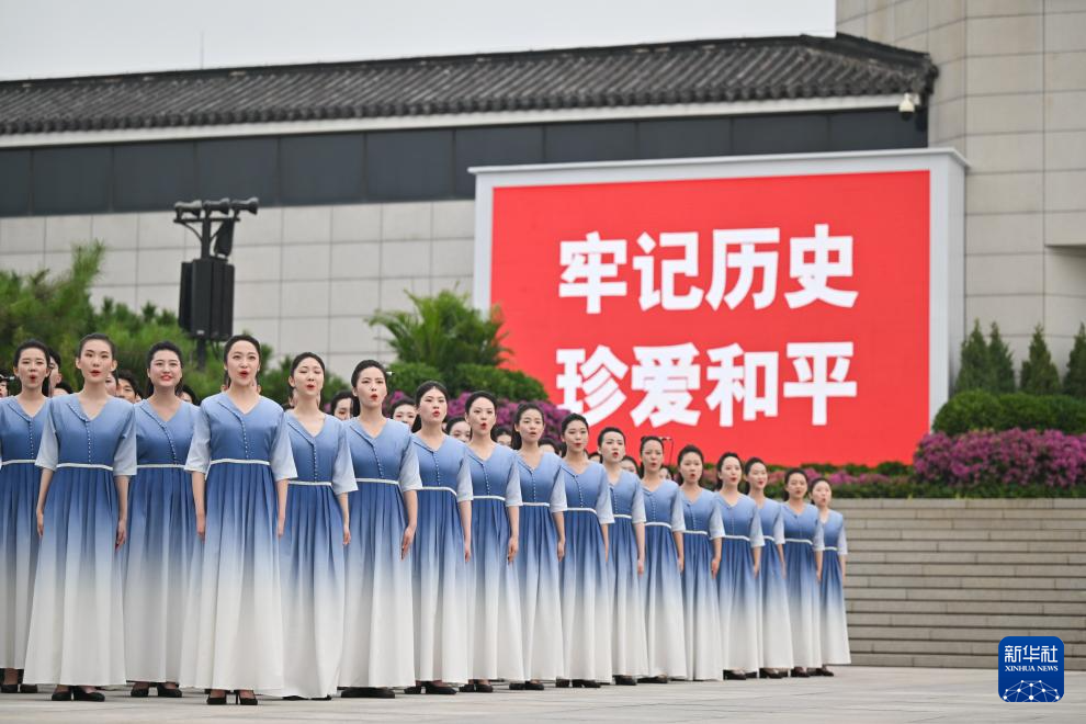 7月7日,首都大學生合唱團在紀念全民族抗戰(zhàn)爆發(fā)87周年儀式上演唱。新華社記者 李響 攝