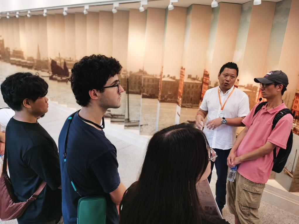 和馬蒂亞斯同行的10余名外國年輕人還分別來自美國、北馬其頓等國家,一行人參觀了上海市歷史博物館、上海城市規(guī)劃展示館等。這群年輕人來華前已從海外社交媒體、電視節(jié)目及好友處了解了許多信息,有的想一睹上海世博會中國館“鎮(zhèn)館之寶”——巨型動態(tài)版《清明上河圖》真容;有的對國內風靡的巨鹿路、武康路Citywalk很感興趣;有的期待領略黃浦江夜游之美。