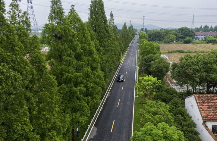 在浙江省諸暨市趙家鎮(zhèn)上京村拍攝的改造提升后的縣道(2024年6月4日攝,無(wú)人機(jī)照片)。新華社記者 徐昱 攝