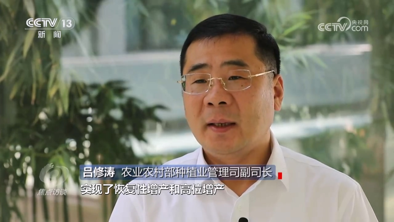 農(nóng)業(yè)農(nóng)村部種植業(yè)管理司副司長呂修濤:“今年的“三夏”生產(chǎn)可以用“過五關(guān)斬六將”來形容,克服了一系列風(fēng)險和挑戰(zhàn),實現(xiàn)了恢復(fù)性增產(chǎn)和高位增產(chǎn),這是今年夏糧一個非常突出的成果。”