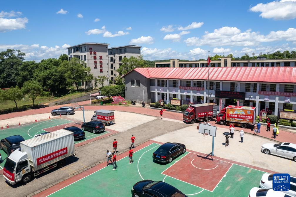 這是7月30日在湖南省湘潭縣拍攝的河口中學(xué)安置點(無人機照片)。新華社記者 陳思汗 攝