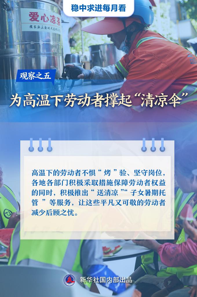 【記者觀察】高溫下的勞動(dòng)者不懼“烤”驗(yàn)、堅(jiān)守崗位,各地各部門積極采取措施保障勞動(dòng)者權(quán)益的同時(shí),積極推出“送清涼”“子女暑期托管”等服務(wù),讓這些平凡又可敬的勞動(dòng)者減少后顧之憂。