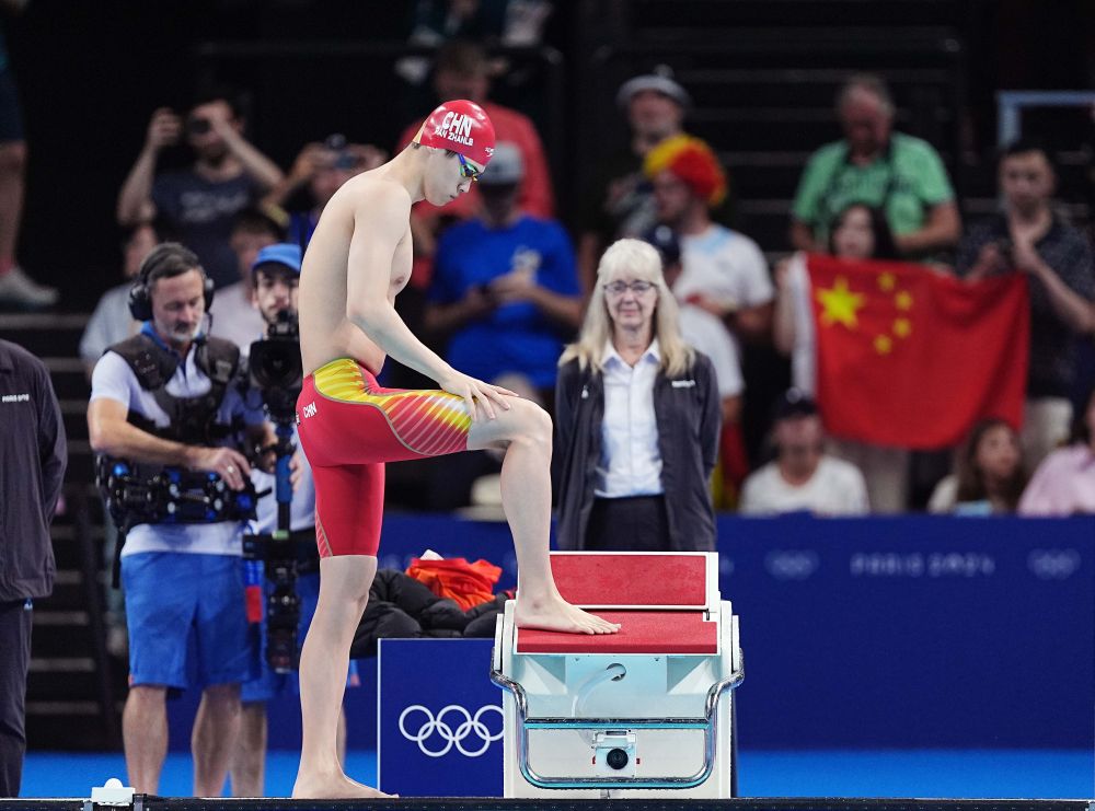 ↑中國選手潘展樂在頒獎儀式上。新華社記者 雒圓 攝
