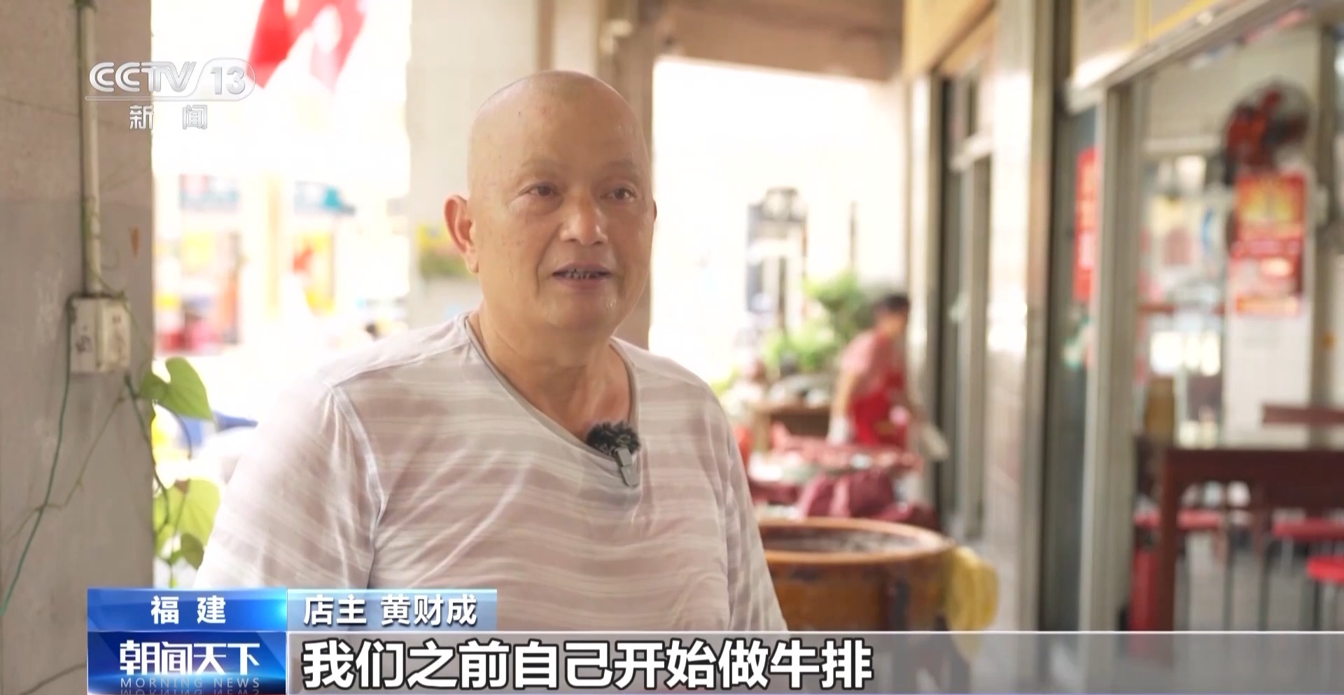 店主 黃財(cái)成:一百多年前國(guó)外的人來泉州經(jīng)商,基本上都是吃牛肉的。我們之前自己開始做牛排、牛肉羹、牛雜。當(dāng)年我爺爺去南洋幫廚,再來到我們這邊改良,特別是華僑大學(xué)的留學(xué)生,周六周日都來我們這家店吃。