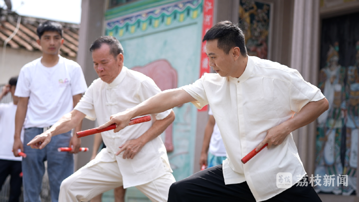“耍槌花”是指舞者手握英歌槌中間部分,用手腕以八字繞動,同時中指、無名指、小指挑槌,使槌花形成立圓后連續(xù)轉(zhuǎn)動,槌花打到哪里,眼睛就望向哪里。在這個過程中,英歌槌時不時就會打到手指,在陳揚波的記憶里,有好幾次直到演出結(jié)束,才發(fā)現(xiàn)雙手已沾滿鮮血,但也只有使出這樣的力道,才能把槌“耍出氣勢,耍得像盛開的花朵”。