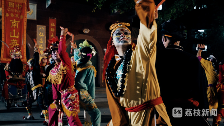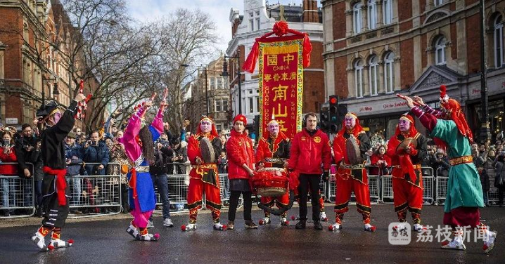 當(dāng)?shù)貢r間 2024 年 2 月 11 日,陳來發(fā)教練率領(lǐng)廣東普寧南山英歌隊的近 20 名舞者現(xiàn)身英國倫敦,揭開了當(dāng)?shù)匦麓簯c典的帷幕,這也是普寧英歌首次出海。與此同時,千里之外的普寧市內(nèi)另有一支南山英歌隊伍正穿梭于街巷,為市民驅(qū)邪扶正,帶隊者之一正是陳揚波。
