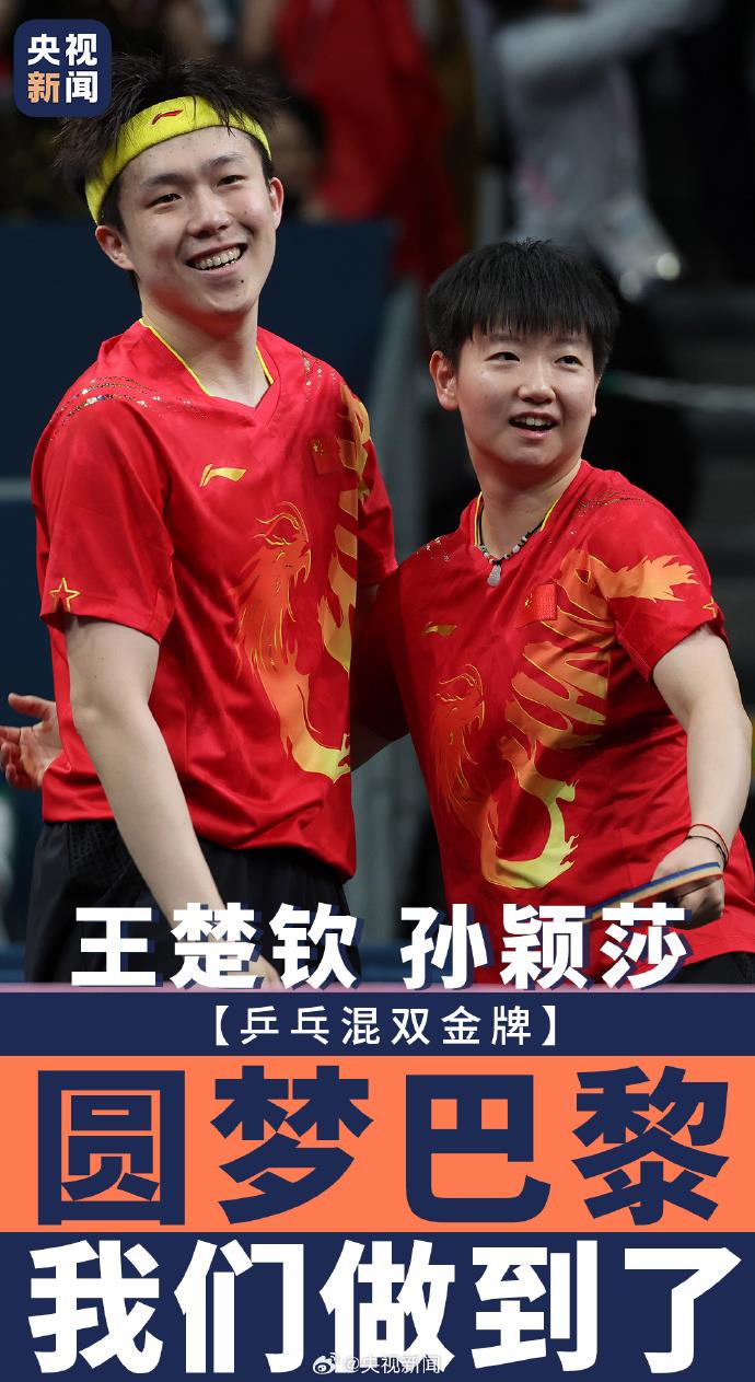 7月30日,在巴黎奧運(yùn)會(huì)乒乓球混合雙打決賽中,中國(guó)組合王楚欽/孫穎莎4-2戰(zhàn)勝朝鮮組合,奪得金牌?!拔覀冏龅搅?!”東京的遺憾在巴黎畫上了一個(gè)圓滿的句號(hào)!