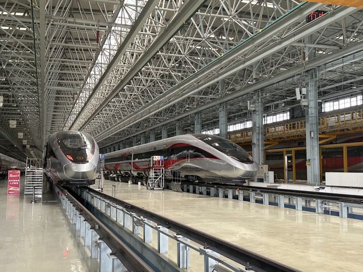 在中車長客國鐵事業(yè)部制造中心拍攝的復(fù)興號智能動車組(2024年7月17日攝)。