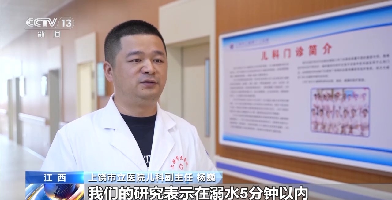 江西上饒市立醫(yī)院兒科副主任 楊巍:我們的研究表示,在溺水5分鐘以內,患兒出現神經功能損害或者死亡的風險為10%。如果溺水時間達到6分鐘到10分鐘之間,那發(fā)生風險的百分比是56%。當溺水的時間在11到25分鐘之間時,出現嚴重神經功能損害的百分比已經達到了88%,當超過25分鐘以上的溺水,那患者出現嚴重神經功能損害或者死亡的風險已經接近100%,所以我們一旦發(fā)生溺水,刻不容緩,立刻開始施救。