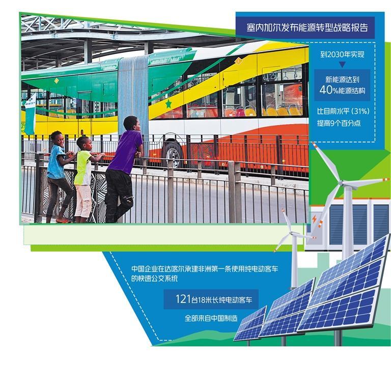 中塞新能源產(chǎn)業(yè)合作持續(xù)深化。中國企業(yè)在達(dá)喀爾承建了非洲第一條使用純電動客車的快速公交系統(tǒng)(BRT),121臺18米長純電動客車全部來自中國制造。由中國企業(yè)承建的20個(gè)車站和維保基地也都設(shè)置有中國制造的光伏系統(tǒng)。