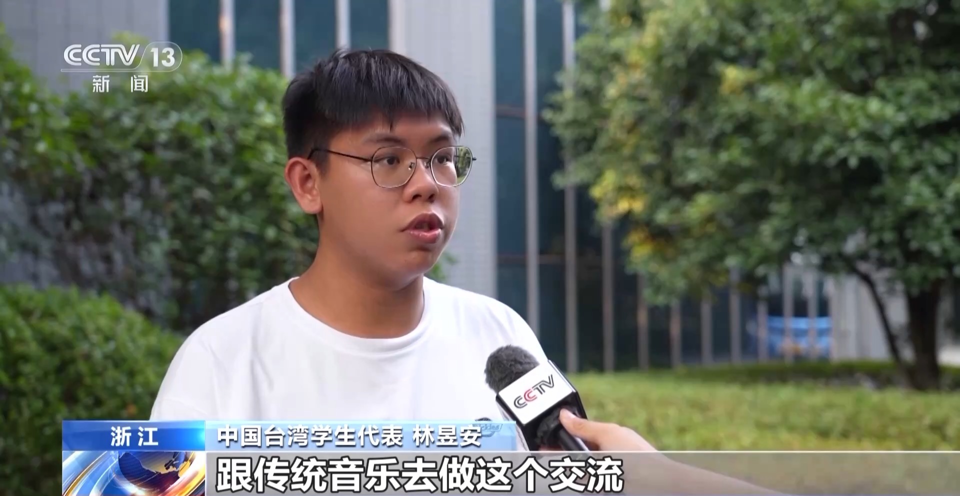 中國臺灣學生代表 林昱安:希望可以通過傳統(tǒng)技藝、傳統(tǒng)音樂去交流,讓兩岸一家親,可以通過這種交流方式,繼續(xù)傳承下去。