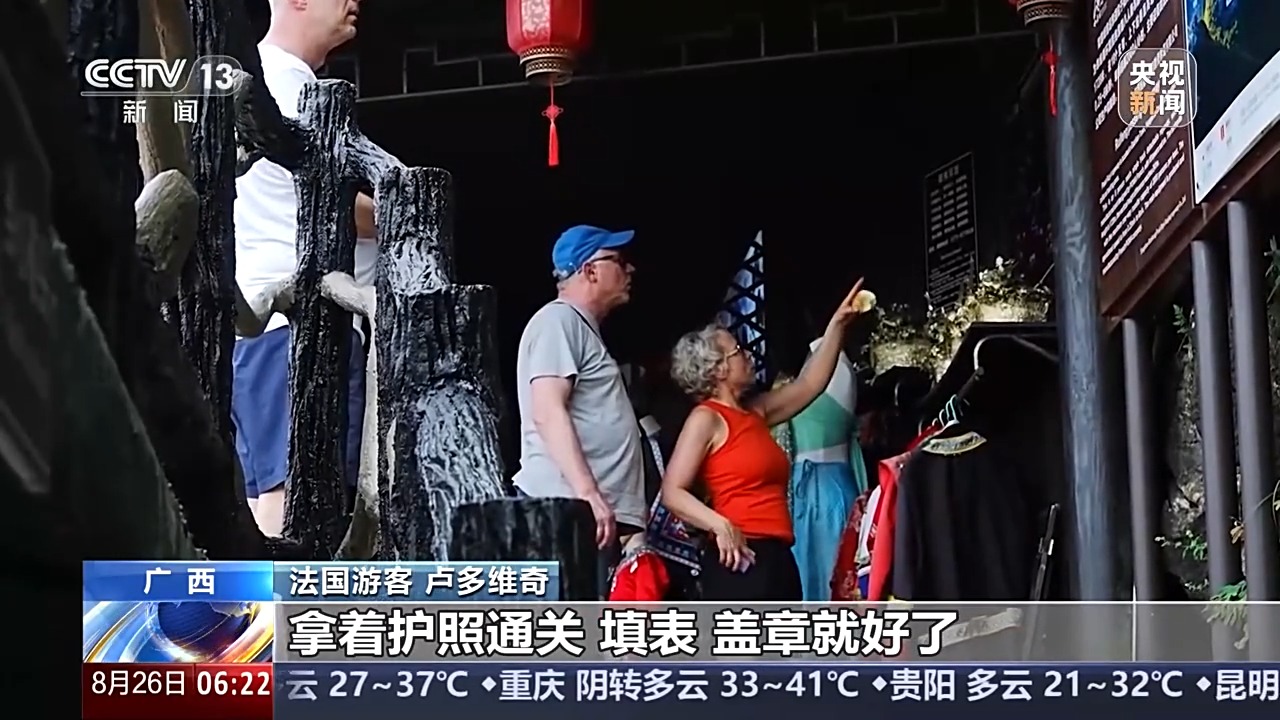 法國游客 盧多維奇:我兒子、女兒來中國匯合一起旅行,辦簽證很簡單。拿著護照通關、填表、蓋章就好了。