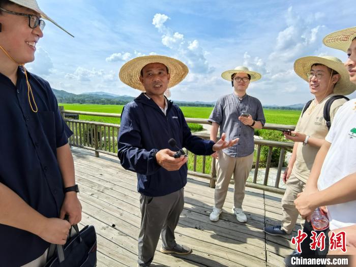 “而今邁步從頭越——長征路上學(xué)黨史”網(wǎng)上主題宣傳福建線活動(dòng)采訪團(tuán)成員走進(jìn)汀江國家濕地公園,感受長汀生態(tài)治理成果。中新網(wǎng)記者 張金川 攝