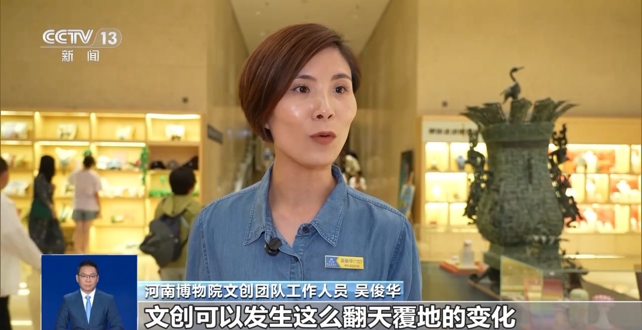 河南博物院文創(chuàng)團(tuán)隊(duì)工作人員 吳俊華:大家來參觀博物館從被動(dòng)灌輸,轉(zhuǎn)化為主動(dòng)探索、去感受考古挖掘的樂趣以及文物的魅力。文創(chuàng)可以發(fā)生這么翻天覆地的變化,文創(chuàng)可以融入大家的衣食住行中。