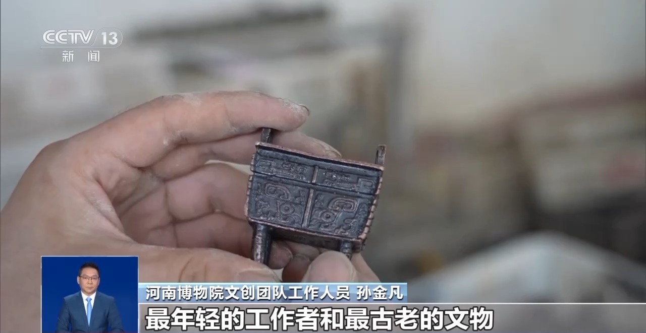 河南博物院文創(chuàng)團(tuán)隊(duì)工作人員 孫金凡:做成的時(shí)候感覺很有成就感,最年輕的工作者和最古老的文物,我覺得我這對(duì)CP組得還真的挺不錯(cuò)的。